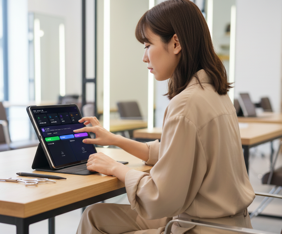你的作品在成長,Neon Mirror 會證明。作品風格、髮型類型、擅長項目,全部 AI 自動跑出來。